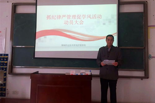 11月8日下午3点,世界杯官网在公共教学楼南楼202教室召开“抓纪律严管理促学风活动”动员大会。世界杯官网院长张文信、副院长王小峰、教学科科长李晓乾及全体一线教师参加此次会议,会议由李晓乾主持。