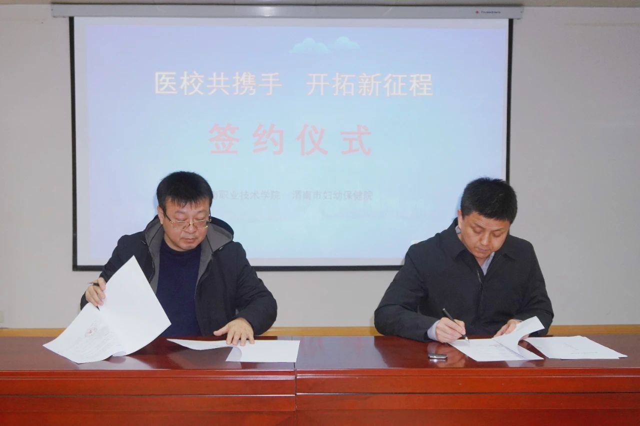会上,校院双方共同签订了《现代学徒制人才培养校企合作协议书》,标志着世界杯官网在渭南市妇幼保健院的现代学徒制试点班正式开启。