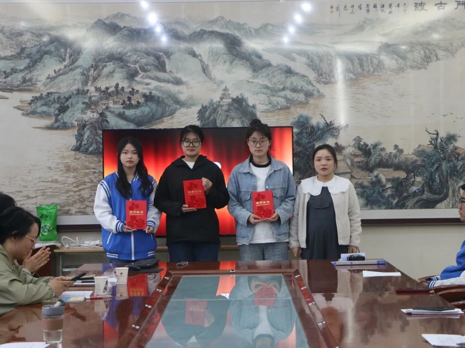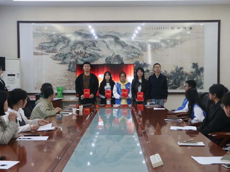 郭瑞为获得“二等奖”的同学颁奖:
