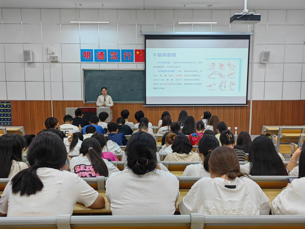世界杯官网薛佳婧、崔玉、穆珍珍等3名教师,从专业角度声情并茂地向同学们分别展示了痛风、压疮、糖尿病的最新科学研究进展及最新成果,现场学生听讲认真、互动良好,同学们表示受益匪浅。此次活动,增加了同学们对专业学习的兴趣,激发了同学们的学习热情。