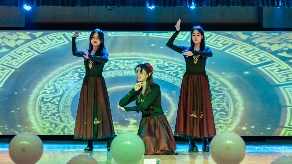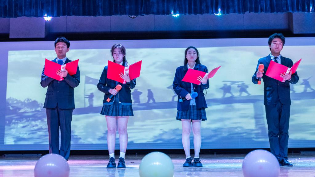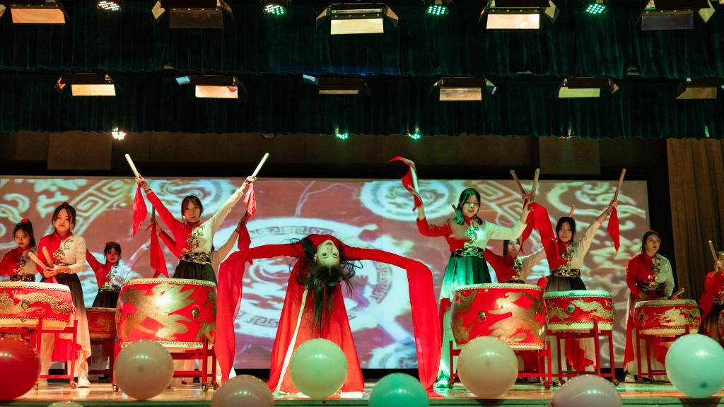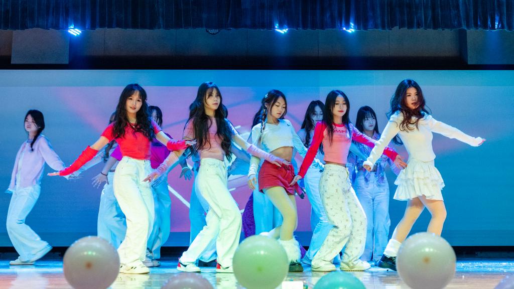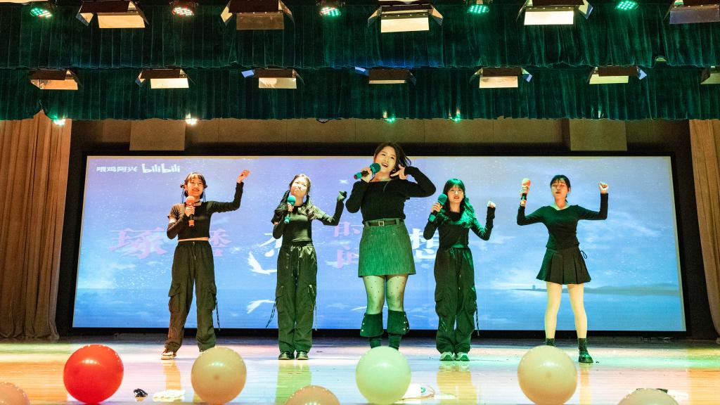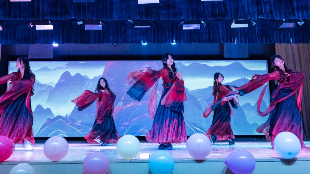 演出在舞蹈《Whiplash》的激情节奏中热烈开场,舞者们充满力量与灵动的表演瞬间点燃了全场气氛。歌曲《指纹》深情悠扬,带领观众走进情感的细腻世界。走秀表演《Blinking moments》则将时尚元素与舞台艺术完美融合,模特们自信的步伐踏出了青春的活力与风采。辅导员老师们带来的歌舞串烧《Dancing Queen》掀起了晚会的高潮,她们用精彩的表演展现出别样魅力,拉近了与同学们之间的距离。舞蹈《落》以诗意的舞姿营造出空灵意境,让观众沉浸于艺术的美妙之中。歌曲《小河淌水1952》深情献唱,表达了对先烈的崇高敬意和对和平的深切祈愿,传递出深沉的家国情怀。图书馆副馆长李博老师演唱的歌曲《我是一条河》,更是以深情的嗓音唱出了岁月的沉淀与人生的感悟,将观众带入了对过往经历的回味与思考之中,赢得了阵阵掌声。