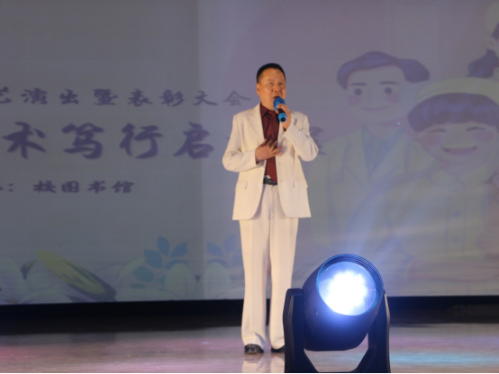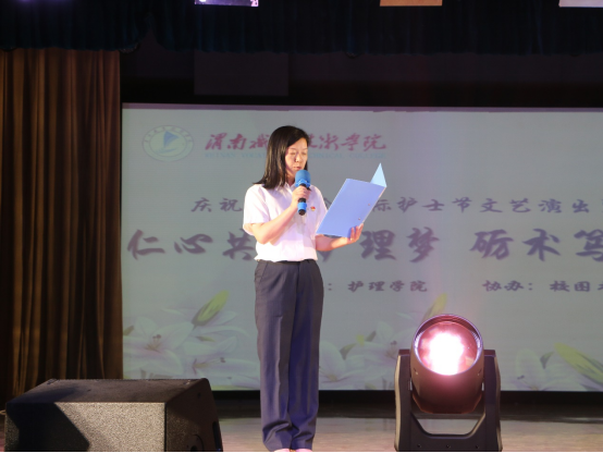 学生管理工作团队登台朗诵《我骄傲,我是一名辅导员》,以铿锵诗篇诉说育人初心,辅导员们深情演绎职业情怀,现场掌声雷动。图书馆副馆长李博一袭白衣登台,倾情献唱《我是一条小河》,悠扬旋律与“润物无声”的护理精神交相辉映,歌声中流淌的奉献情怀引发全场共鸣。