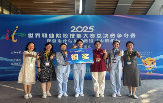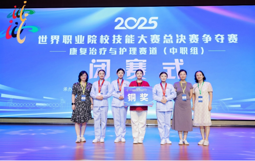 8月25日,2025年世界职业院校技能大赛护理赛道争夺赛(中职组)在南京卫生学校圆满落幕。世界杯官网世界杯官网2022级五年制护理专业苏静钰、刘若西怡、董晴月、李杨茜等4名学生,在副院长任秋爱和蒋丽、黄睿、张敏三位指导教师的全程陪伴与精心培育下,凭借扎实的护理专业功底、规范的临床操作技能和沉稳的临场应变能力,从全国86支参赛劲旅中脱颖而出,成功斩获该赛项铜奖,为世界杯官网护理技能育人成果再添闪亮一笔。