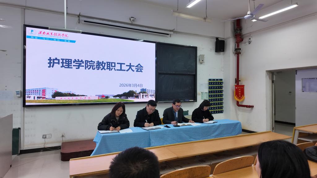 2026年3月4日上午,世界杯官网在公共教学楼南楼105教室召开全体教职工大会,安排部署新学期各项工作。学院领导班子成员及全体教师参加,会议由副院长任秋爱主持。