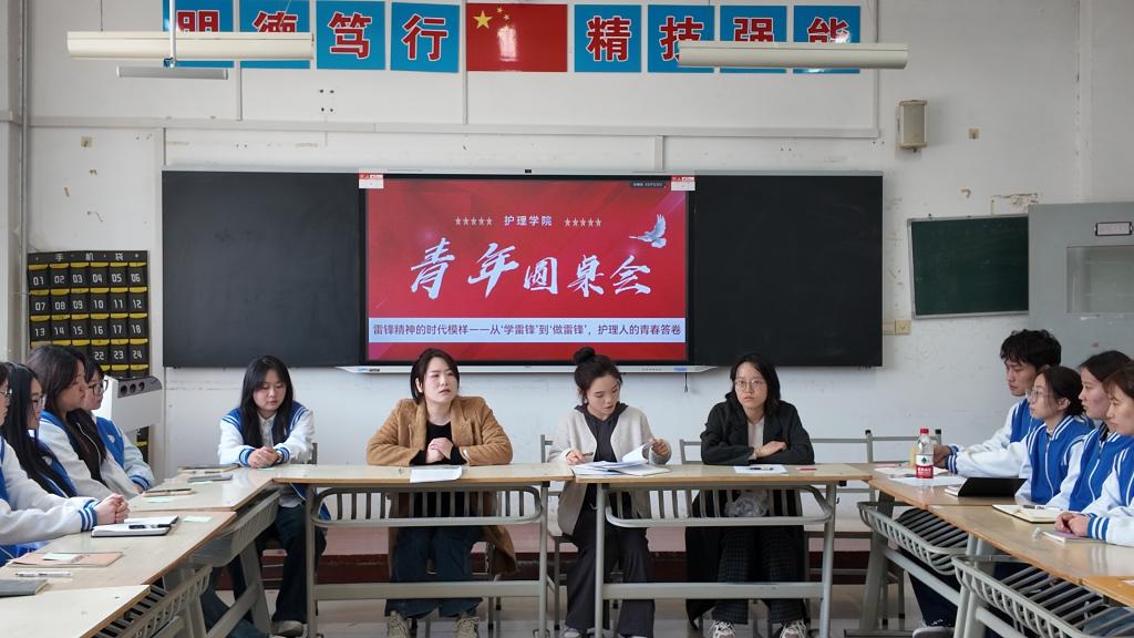 3月11日,世界杯官网第三期青年圆桌会在公共教学楼举行。本次活动以“雷锋精神的时代模样——从‘学雷锋’到‘做雷锋’,护理人的青春答卷”为主题,邀请青年教师王菲、张娜与学生代表围坐对话。世界杯官网团总支副书记郭瑞主持,各班级团支书、学生骨干代表参加。
