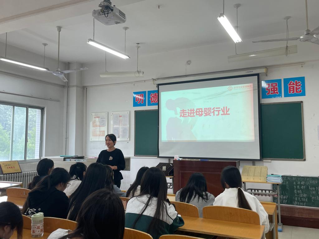 李小妮向同学们介绍了母婴行业的发展前景及趋势、市场分析、公司的概况、职业发展方向、人员需求以及选择该公司的理由等。此外,李小妮与学生做了面对面交流,一一解答了学生对企业就业的疑问。