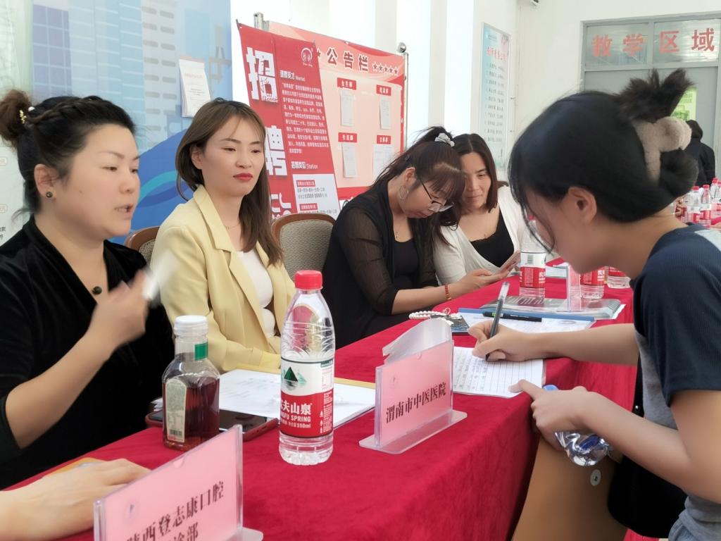 本次招聘会邀请了渭南市中医医院、蒲城君康医院、渭南海城皮肤专科医院、陕西创美集团、西安万百泉医药连锁有限公司、华阴民生医院、全程美容美体管理咨询有限公司、陕西登志康口腔门诊部、西安诺美荟与科妍俪有限公司、桥南镇花园卫生院、西安娇婷连锁美容有限公司、渭南恒悦皮肤门诊、老百姓大药房连锁有限公司等25余家用人单位参会。提供就业岗位近300余个,500余名学生参会。