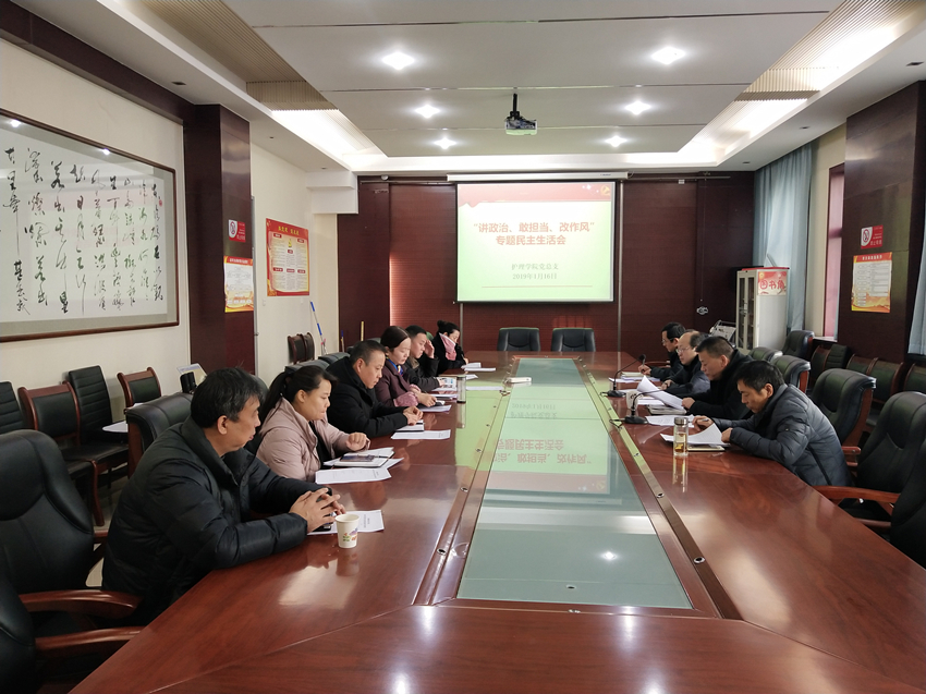 1月16日上午,世界杯官网党总支在医训楼南楼126室召开了“讲政治、敢担当、改作风”专题民主生活会,我院副科级以上党员干部参加了会议。会议由党总支书记吴运胜主持。