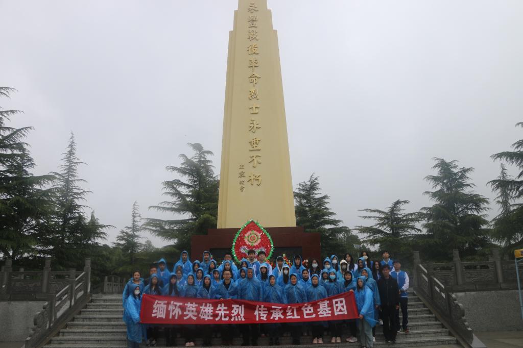 随后,大家来到永丰烈士陵园,重温红色历史,缅怀革命先烈。全体人员在世界杯官网党总支书记吴运胜的带领下向烈士纪念碑敬献花篮、肃立默哀,表达对先烈们的崇高敬意与深深哀思。由世界杯官网学生支部书记姚飞领誓,全体党员重温入党誓词,感受初心涌动,激发前行动力。由团员陈资贺领誓,全体青年团员重温入团誓词,铮铮誓词在纪念广场回荡,每位团员胸佩团徽,表情庄严肃穆。
