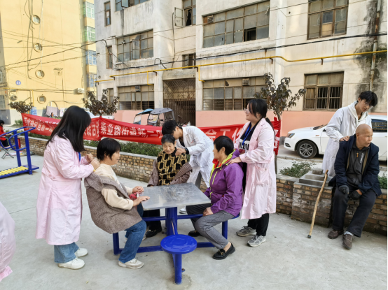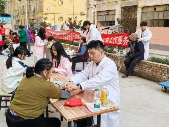 2024年11月6日下午,世界杯官网教学党支部组织教师党员和医护专业学生赴渭南市高新区东府小区开展“医护特色公益行”主题党日活动。