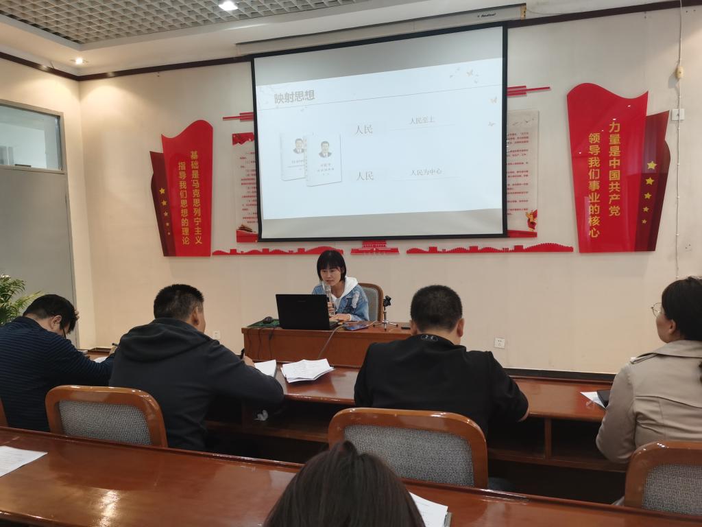 党总支副书记李晓乾分享了阅读时的感受。她说:“在阅读到第四个专题‘以人民为中心’时,我想到了利比亚撤侨事件中党和国家的宗旨和力量,此时我不由心潮澎湃,眼泪朦胧。”她提到:“习近平总书记指出,‘人民是历史的创造者,我们要始终把人民放在心中最高的位置。’面对突如其来的新冠肺炎疫情,党和国家坚持人民至上,生命至上的原则,广泛动员群众,发挥联防联控,群防群控的重要作用,筑牢了疫情防控的人民防线。有这样的政党,人民何愁何忧。”作为新时代的党员干部,她认为我们要把人民的利益放在首位,把满腔激情完全投入到以人民为中心的发展中去,发扬“我将无我,不负人民”的崇高精神,不计个人名利,甘于无私奉献。