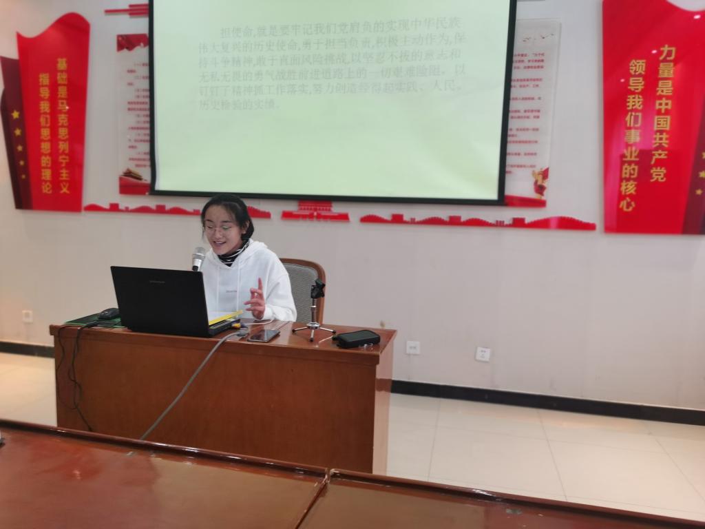 入党积极分子张宇介绍了《习近平谈治国理政》出版的社会背景和意义。她结合护理专业实际,与党员同志分享了两点感悟。一是要在不断学习中坚定政治信仰。青年学生要不断学习党的理论知识,坚定“四个自信”、做到“两个维护”,任何时候都要与党同心同德。二要在不断学习中坚定党的宗旨。她以疫情防控中党和国家表现出的想人民之所想,急人民之所急,忧民之所忧的事迹为例,希望广大青年学子坚定人民立场,努力学习专业知识,发扬南丁格尔精神,服务祖国医护事业,为治愈人民病痛贡献力量。
