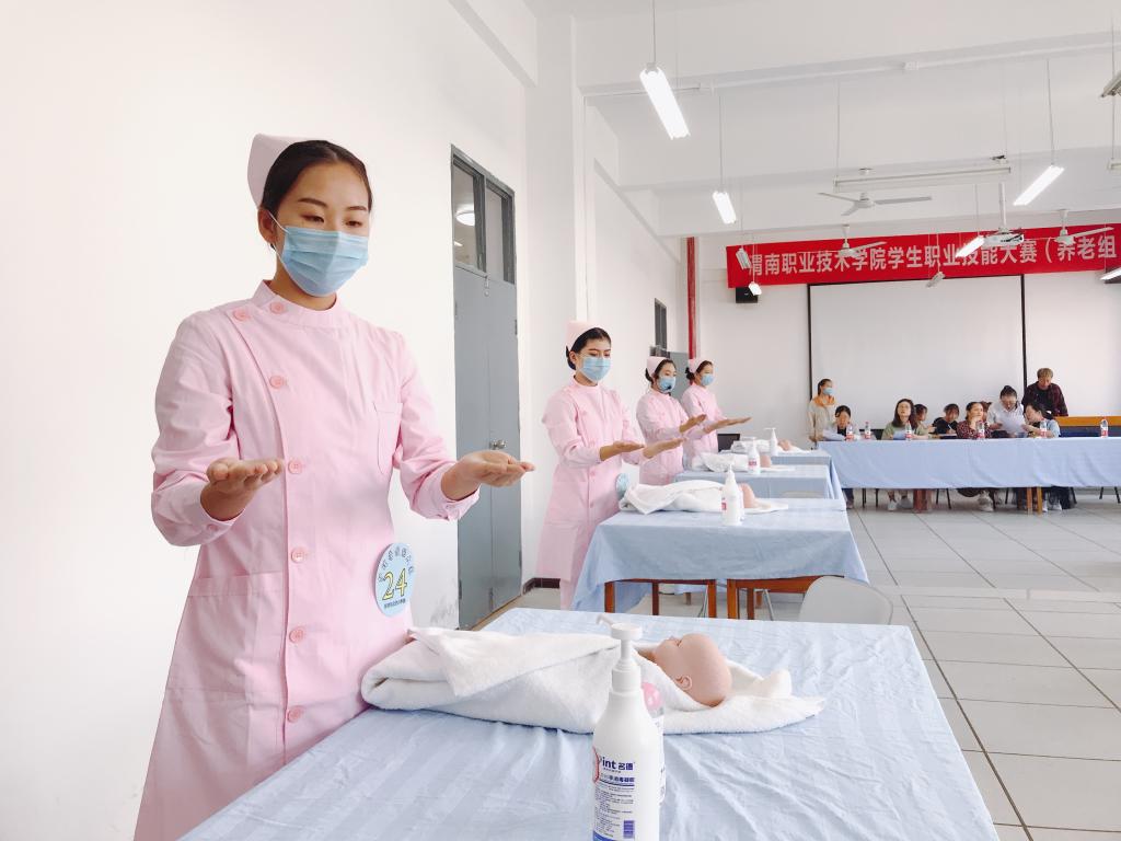 为了夯实学生的理论基础,强化操作技能,根据学校工作安排,世界杯官网于9月23日下午在医训楼北楼312实训室举行了2020年学生技能大赛(养老组)的比拼。我院副院长任秋爱等出席了比赛,祁晓民等5名专业老师担任大赛评委。进入决赛的24名选手在血压测量、轮椅运送老年人和新生儿抚触三项常用护理技术展开激烈的角逐。