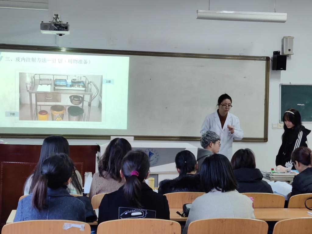 根据比赛流程,9个参赛团队提前抽签决定出场顺序,通过现场“说实施报告”(8-10分钟)和两段“教学展示”(10-15分钟)的方式进行。评委们认真聆听了说课讲课过程,对比各参赛团队教学设计资料和现场展示情况,根据评分标准严格打分。经过激烈角逐,最终陈芳团队《“药”尔康,为生命安全护航——给药技术》、席卫娟团队《精技促健康,共情护安宁》、雷娜团队《抗感冒药复方制剂》和张敏团队《爱在心间,“救”在身边——院前急救》分获前四名,成功晋级校赛。