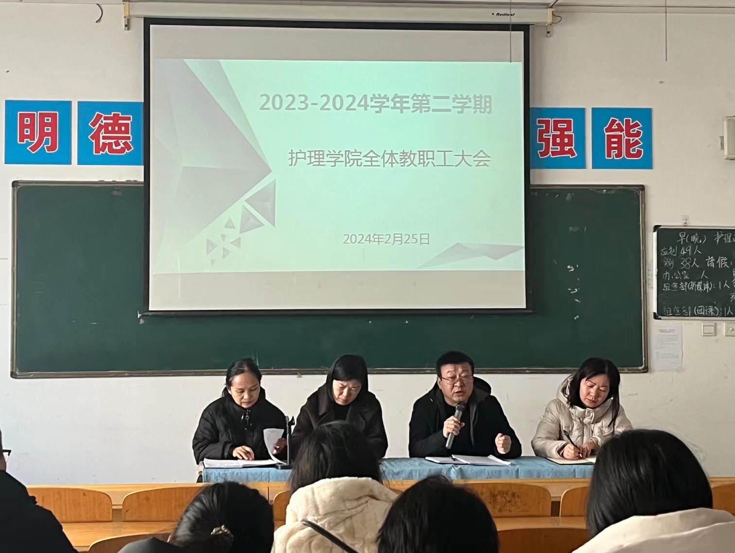 会上,吴亚飞对开学初的教学工作作了具体安排。她要求教学科做好教学设施故障排查、教室卫生、课表调整、教师休息室等课堂保障工作;教师认真落实课堂改革要求,精心备课、认真上课,做好课堂管理,全力提升到课率、抬头率和考试通过率。同时对持续做好护理高水平专业群建设、教科研课题及项目的申报与推进等重点工作进行安排,提出要求。