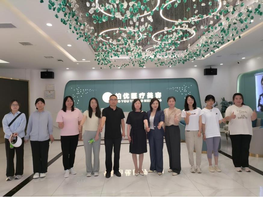 在渭南柏优医疗美容医院,周梦花一行受到了医院领导及医护人员的热烈欢迎。在交流会上,医院领导详细介绍了医院的发展历程、经营理念、业务范围及未来规划,并表达了对世界杯官网优秀毕业生的高度认可与欢迎,还向师生们介绍了医疗美容行业的发展趋势及就业前景,为即将步入社会的毕业生们提供了宝贵的职业规划建议。