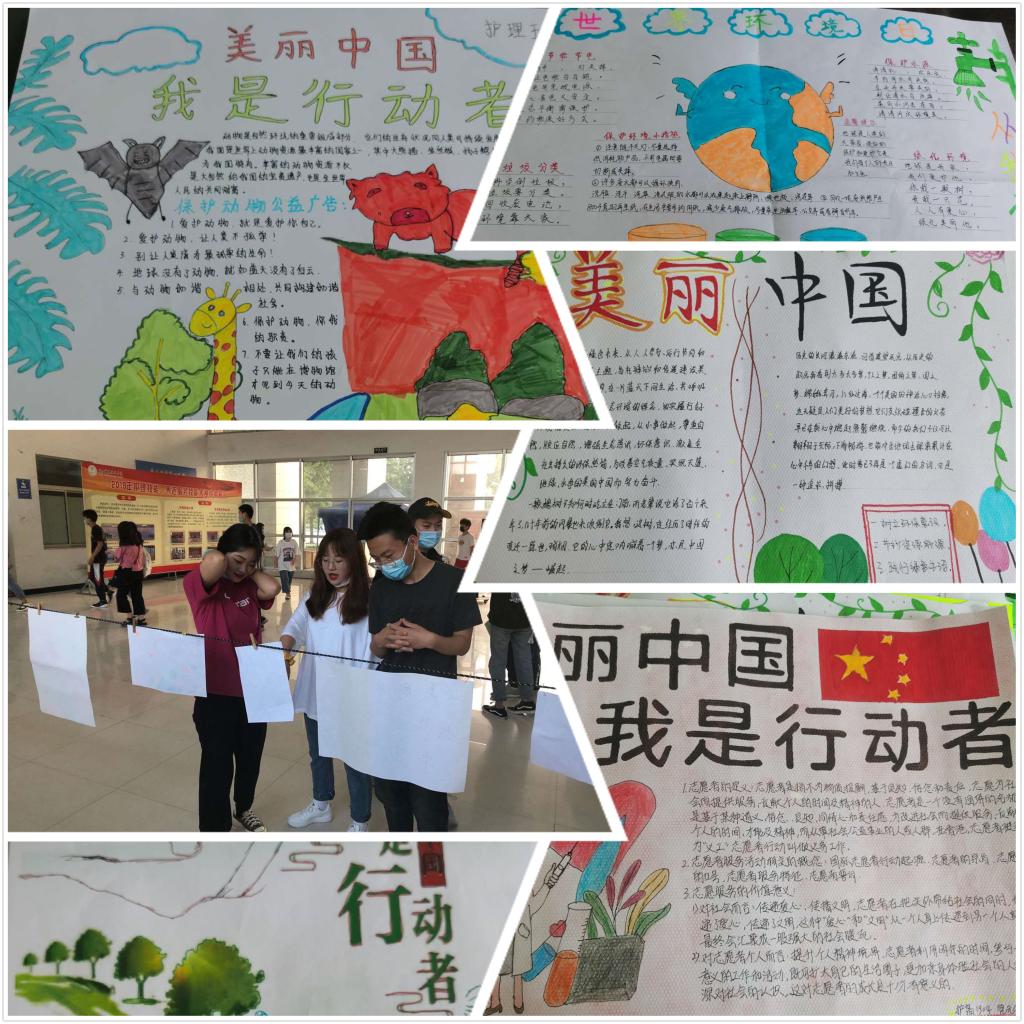 6月9-10日,世界杯官网学生会宣传部从收集的百余份手抄报中选出20余份优秀作品进行展出。各班同学灵心妙笔将自己对环保的理解与美丽中国的展望绘制出来,用一幅幅生动形象的作品体现他们对环境保护的渴望。这些优秀的作品引来同学们驻足观看,将环保理念传递给更多的学生。