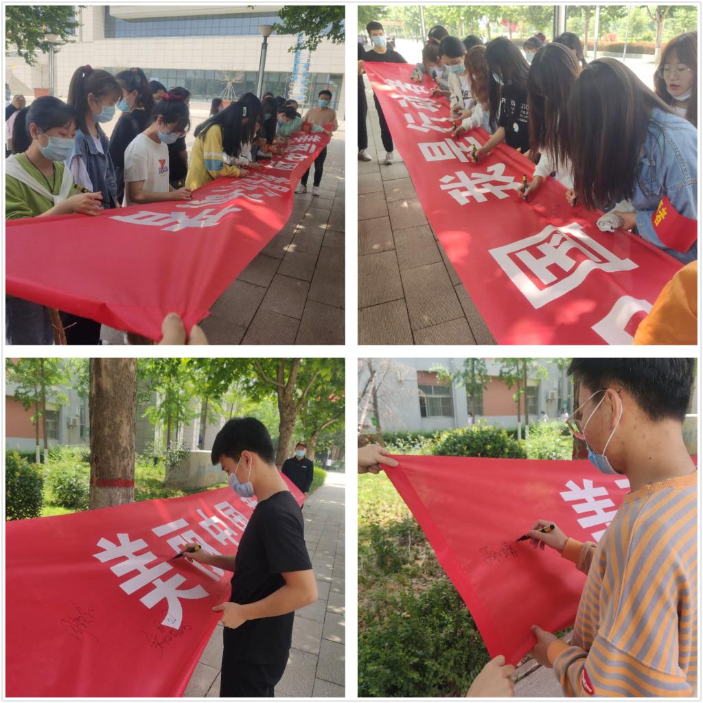 6月10日下午,借着主题班会、手抄报的东风,世界杯官网团总支组织学生在公共教学楼前广场开展了“美丽中国,我是行动者”主题签名活动,团总支副书记杜磊向同学们讲解了环境保护的重要性,呼吁同学们行动起来,保护美丽校园,美丽渭南,美丽中国。同学们积极响应团总支号召,在横幅上郑重签下自己的名字,表达了践行环境保护的决心,做美丽中国的行动者和守护者。