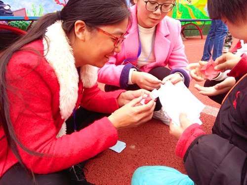上午9点,志愿者们到达曙光特教学校,跆拳道协会成员向孩子们展示了跆拳道,志愿者为孩子们讲了童话故事,共同折爱心留作纪念,用行动去关爱特殊儿童。孩子们虽然不能说话,却用铅笔写出了“谢谢哥哥姐姐们”的真挚话语,他们用稚嫩的笑脸,无声的行动,感动了每一位志愿者。
