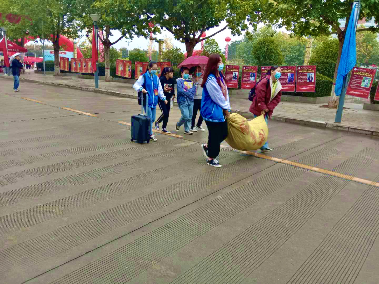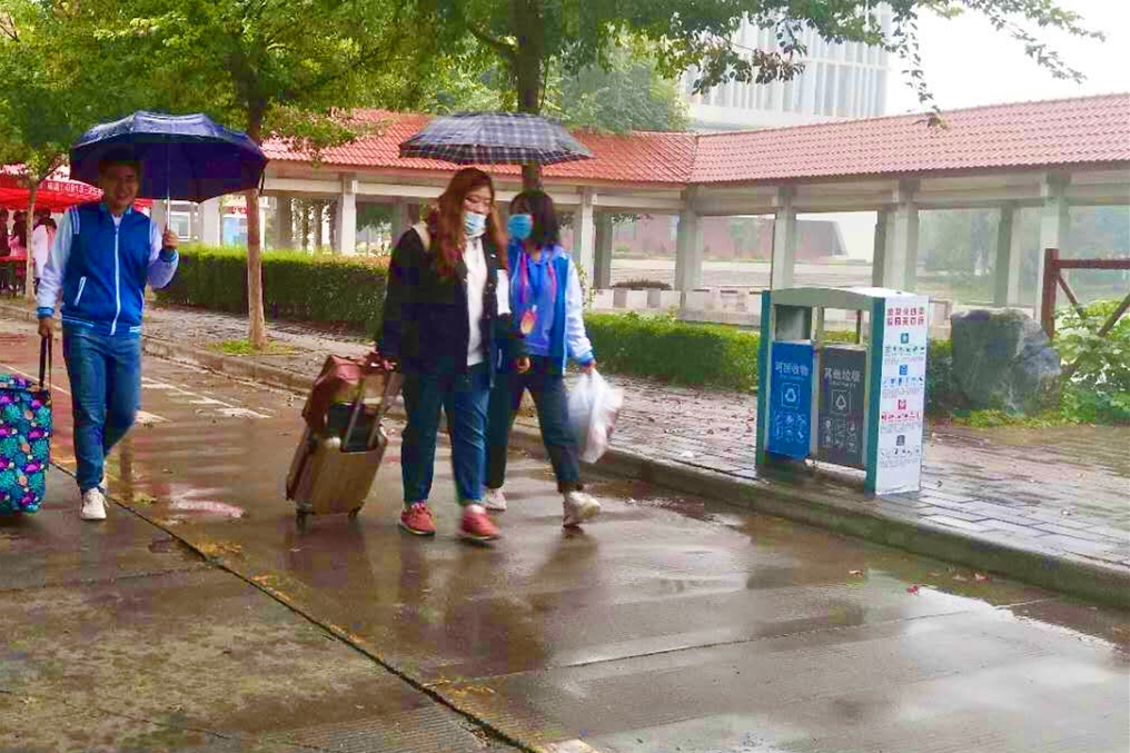 10月11日上午,志愿者们怀着对新生的期待提前来到南广场集合,他们身穿校服,精神抖擞,在各组长的带领下,奔向校园南门。他们主动接过家长手中的行李,向家长及新生介绍学校布局,解答家长的疑问,带领学生按学校规划走完报到流程。12日、13日,志愿者如火的热情冲破秋雨的凉意,他们热情地帮家长撑伞、搬行李,引领学生户口审核,班级报到,分配宿舍,当新生全部报到完毕,志愿者便走向另一个需要服务的新生。