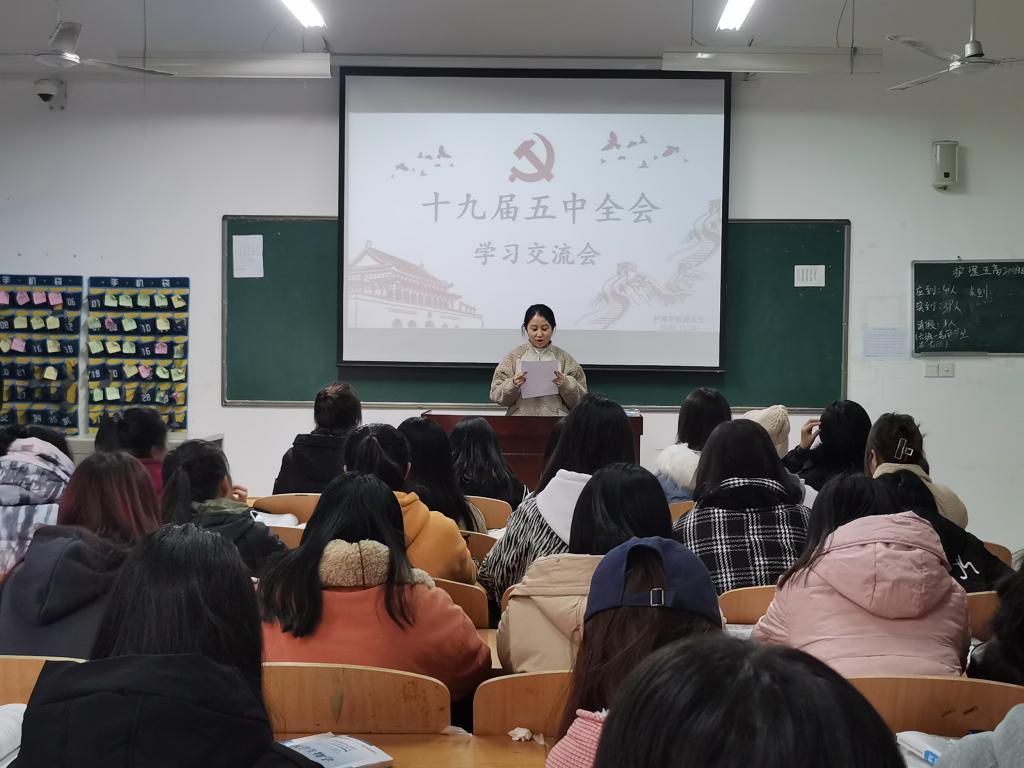 11月26日下午,世界杯官网团总支在公共教学楼南楼319教室召开了“学习十九届五中全会精神”学习交流会,团总支书记白小萌、副书记党员敏、杜磊,各部门部长以及40名学生代表参加了交流会,交流会由团总支秘书部靳欣芝主持。