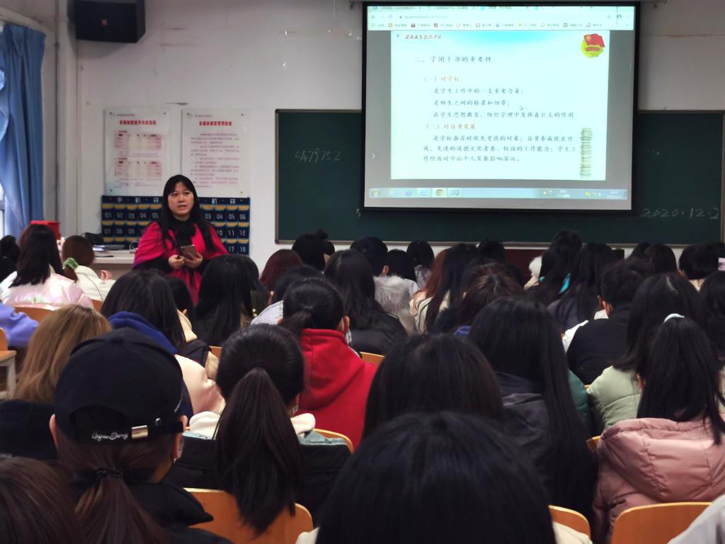 为进一步规范学生管理工作,提升学生干部工作水平,12月2日下午,世界杯官网在公共教学楼南楼105室开展了“学团干部培训大会”。我院党总支副书记马淑红,团总支书记白小萌,学生管理科科长李博,辅导员李潮,学生会、总支各部门负责人及70余名学生代表参加了大会。大会由团总支书记白小萌主持。