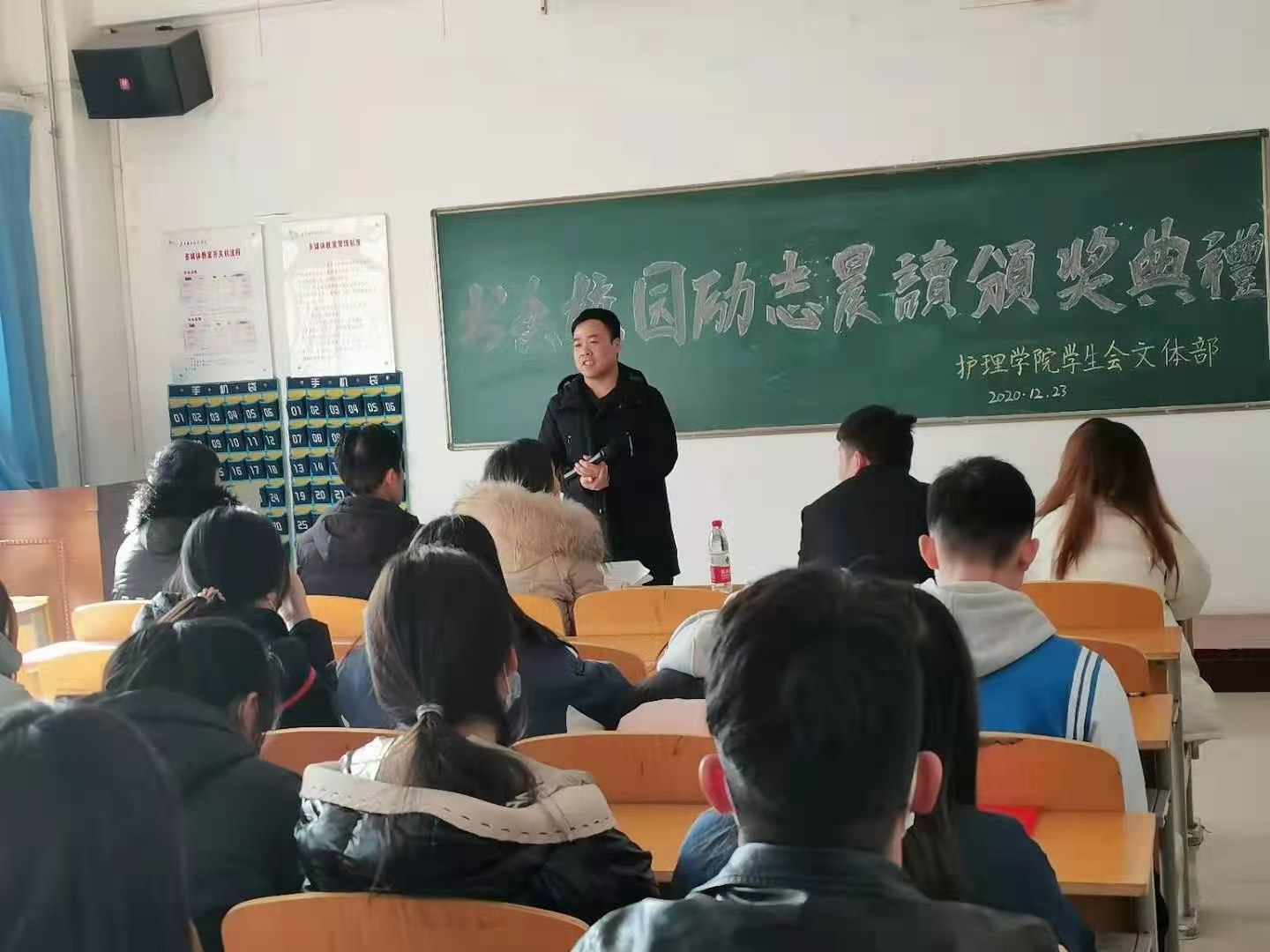 梁尚武为荣获本次活动奖项的班级颁奖并予以鼓励。优秀班级获得者护理高职2003班班长陈浩楠同学代表获奖班级作了发言。他希望各班级不断在学习的过程中展示我们大学生的风采,积极向上,再接再厉。