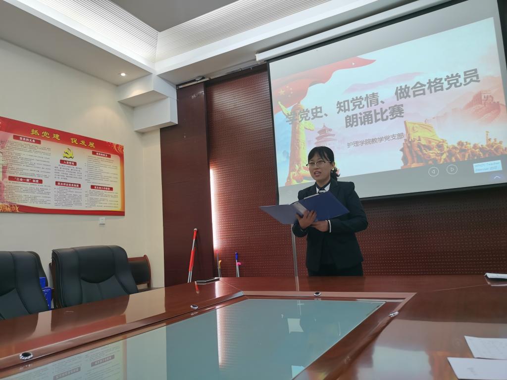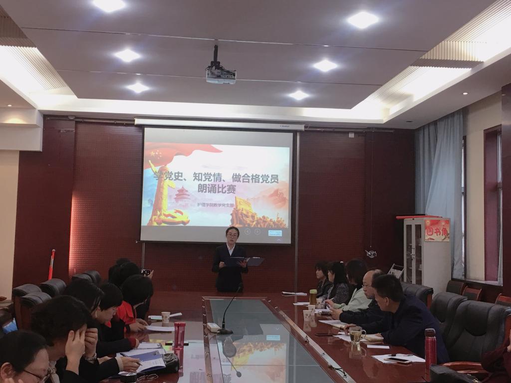 10月30日下午,为了庆祝中国共产党成立98周年,重温党的光辉历程,弘扬党的优良传统,坚定理想信念,世界杯官网教学党支部在医训南楼第一会议室举行了“学党史知党情 做合格党员”朗诵比赛。我院党总支书记吴运胜、院长张成、副院长吴亚飞、副书记马淑红出席朗诵会并担任评委,共十二名党员参加了朗诵比赛。