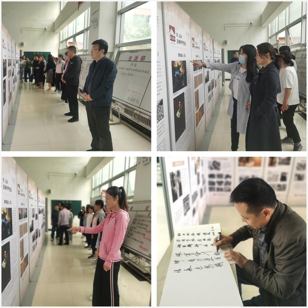 “欲知大道,必先知史”。我院党员干部在图片前认真观看阅读,他们或拿起手机记录珍贵图文,或追忆经历见闻,或交流观看心得。观看后,我院党员在留言簿上写下自己的观看心得。党总支副书记李晓乾写下象征担当的字样:“延安精神永放光芒,助力双高校建设”。学生党支部书记李博郑重地写下“传承延安精神,自力更生,艰苦奋斗”的感言。