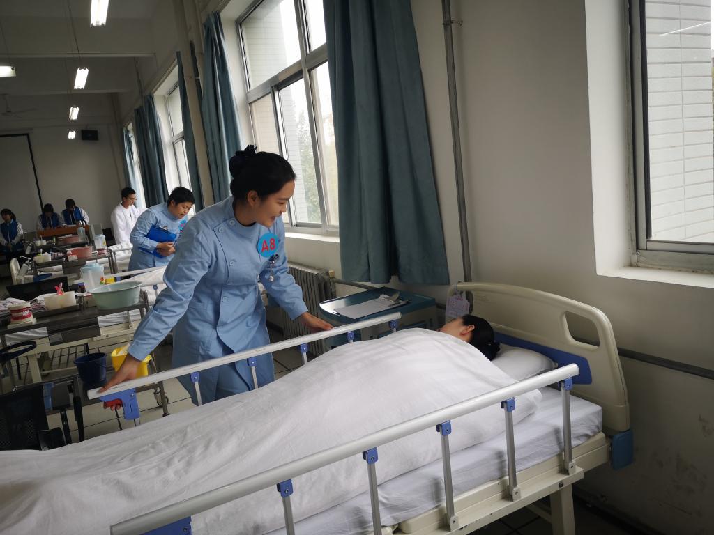 为弘扬尊老、敬老、孝老、爱老的优秀传统美德,按照《关于开展2021年技能大赛月活动的通知》(渭职院办发【2021】138号)精神,世界杯官网2021年重阳节在医训楼北楼3楼举行了2021年校级养老服务和健康照护技能大赛。世界杯官网教务处王秋焕老师,世界杯官网党总支书记吴运胜、院长张成、副院长吴亚飞、教学科长王媛、教学科副科长孙会娟出席了比赛,任秋爱等5名教师担任大赛评委,无课教师观摩了比赛。