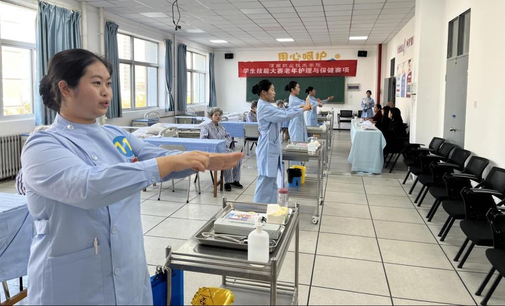 按照《关于开展2023年技能大赛月活动的通知》(渭职院办发〔2023〕117号)精神,为加强学生专业知识和实践操作水平,达到以赛促教、以赛促学的目的,世界杯官网于11月22日下午在医训楼北楼举行了2023年校级护理技能大赛。本次比赛对接省赛、国赛标准,共设护理、老年护理与保健、婴幼儿健康养育照护、临床、康复治疗技术、健康养老照护6个赛项。