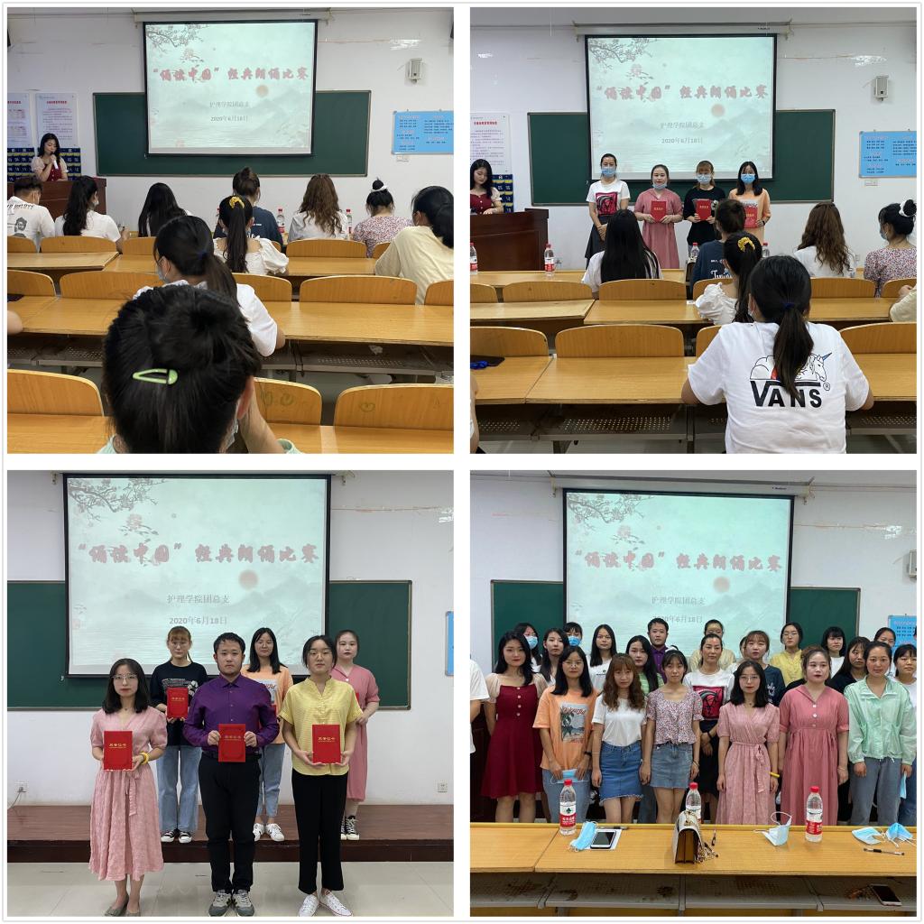 本次比赛由世界杯官网团总支主办。大赛分为预赛和决赛两个阶段,6月13日下午,“诵读中国”经典朗诵比赛预赛从17名选手当中选出6名选手进入决赛。决赛中,参赛选手精神饱满,仪态大方,他们用激昂自豪的声音,表达了他们对祖国文化的热爱和弘扬中华优秀文化的决心。助产高职1901班杨嘉盈以“中国阻击战”为主题,讲述了2020年初的一场突如其来的疫情下,中国所遭受的苦难,讲述了中国精神的伟大和厚重。她吐字清晰,情绪饱满,感染着评委及观众,获得了阵阵掌声,荣获此次比赛一等奖。护理高职1904班许凯睿以“亲爱的北京,你还好吗?”为题,讲述了疫情之下,对北京深沉的爱与祝福,获得了比赛的二等奖;选手护理高职1901班杨倩获得了本次比赛的三等奖。张晶晶、徐文静、贺田欣等同学获得优秀奖。