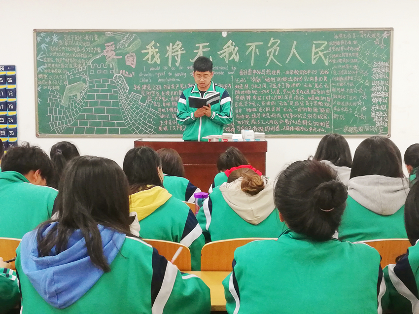 “这么大一个国家,责任非常重、工作非常艰巨。我将无我,不负人民。我愿意做到一个“无我”的状态,为中国的发展奉献自己。”各班团支书向同学们讲述了习近平总书记在罗马会见意大利众议长菲科时的对答,组织同学们交流了对“我将无我,不负人民”认识体会。学生刘萌说:“这句话是习近平总书记将庄子齐物思想与共产党员奉献精神的结合升华,充分体现了一个大国领袖高尚的境界和超凡脱俗的伟人担当。作为一名大学生,我们要积极践行社会主义核心价值观,弘扬爱国奉献精神,将自己的青春与热血奉献祖国医护事业。”学生李田分享道:“习近平总书记这句话是共产党员宗旨的具象化,表现了总书记对人民的深厚情怀,作为一名建档立卡学生,一名国家精准扶贫政策的受益者,我要铭记祖国、社会、学校对我的帮助,更加刻苦学习,用实际行动回报祖国医护事业。”学生陈梦阳说:“习主席的回答彰显了一种博大胸怀。‘苟利国家生死以,岂因祸福避趋之。’习近平总书记为中国人民谋幸福、为中华民族谋复兴,甘于奉献、勇于担当。我们要紧跟习主席的脚步,担当起该担当的责任。在学习中刻苦努力,在工作中忘我无我,无私奉献,不负祖国期望。”