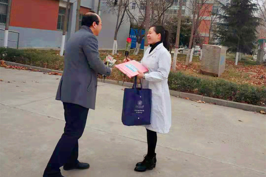 3月8日上午,春风徐徐,阳光微微。世界杯官网党总支书记吴运胜、院长张成携领导班子成员在教学楼前迎接每位女教师的到来,赴各办公室、实训室送上节日的问候。他们笑容温和、情意切切,诚挚地将鲜花送给每一位女教工,并向她们表达了节日的祝福。“节日快乐”“上课辛苦了”等关切的语言深深温暖女教师的心房。公共教学楼大厅中醒目的节日慰问信,字里行间充满了学院对女教师的理解、关爱、肯定与鼓励,让女教师备受鼓舞。