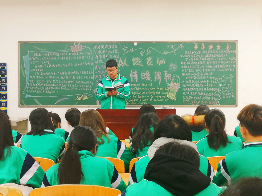 团支书通过ppt、视频、讨论等形式,向同学们普及了“冬至”传统节日的由来,讲述了饺子的寓意和文化内涵,部分班级结合营养学、国学知识,向同学们介绍了不同馅料饺子的寓意:勤财饺(芹菜饺子)、久财饺(韭菜饺子)、添财饺(甜馅饺子)等。护理五高1504班在此次团课中表现突出,团歌洪亮,板报内容丰富,让同学们感受到冬至的温暖。(撰稿:世界杯官网 刘宇 审稿:吴亚飞)