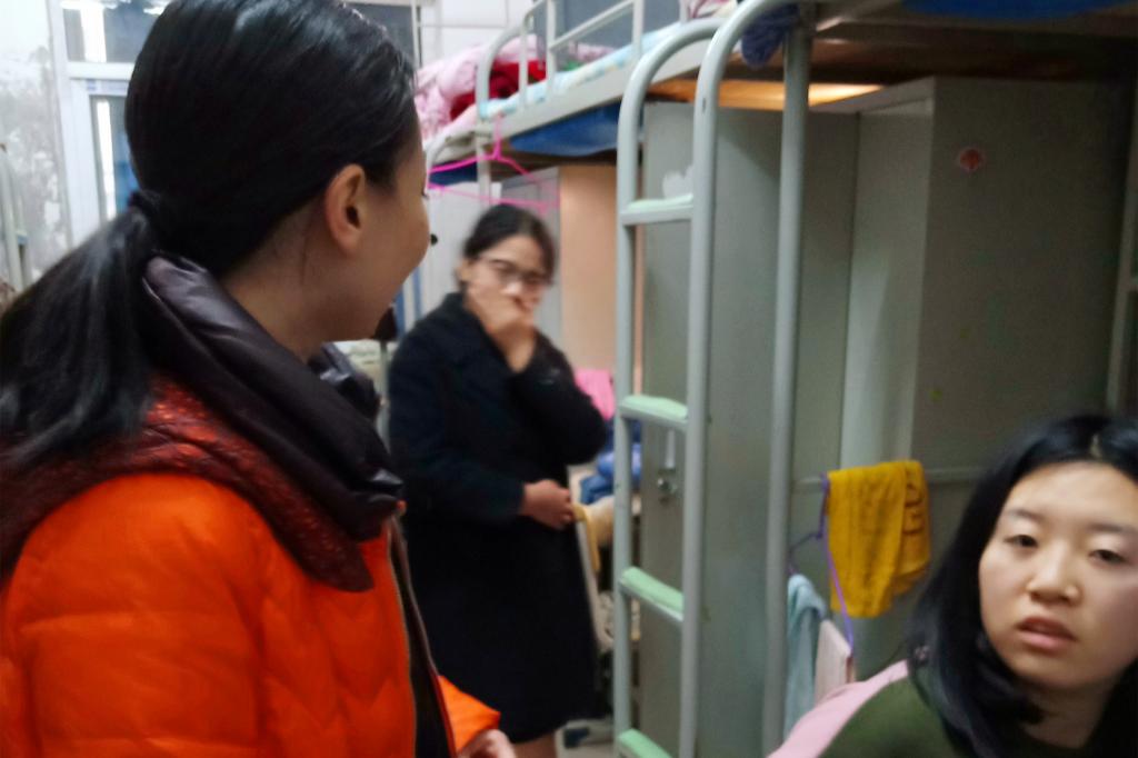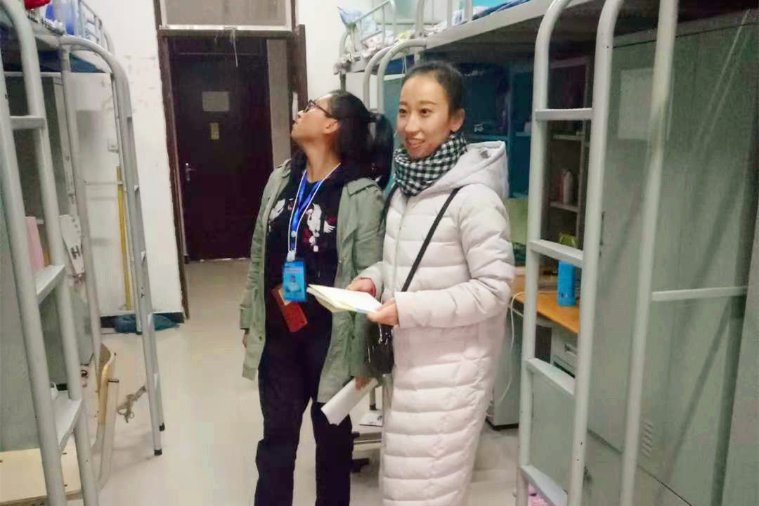 辅导员王星波检查学生宿舍情况