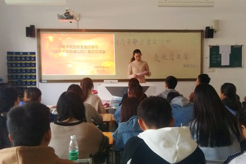 为了进一步提高我院团学干部的综合素质,10月30日下午世界杯官网团总支在公共教学楼北楼116教室开展了学习“团学干部自律公约”座谈会,我院团总支书记白小萌、各部门负责人参加了此次会议。