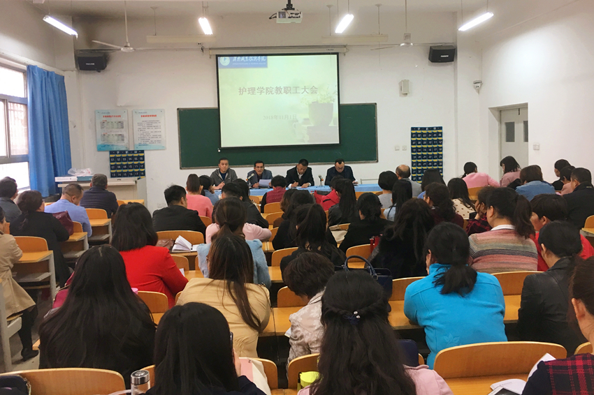 11月1日下午,世界杯官网组织全体教职工在公共教学楼南楼102室召开了2018-2019学年第一学期期中教职工大会。我院党总支书记吴运胜,院长张文信,副院长王医平、王小峰出席了会议。会议由王医平主持。