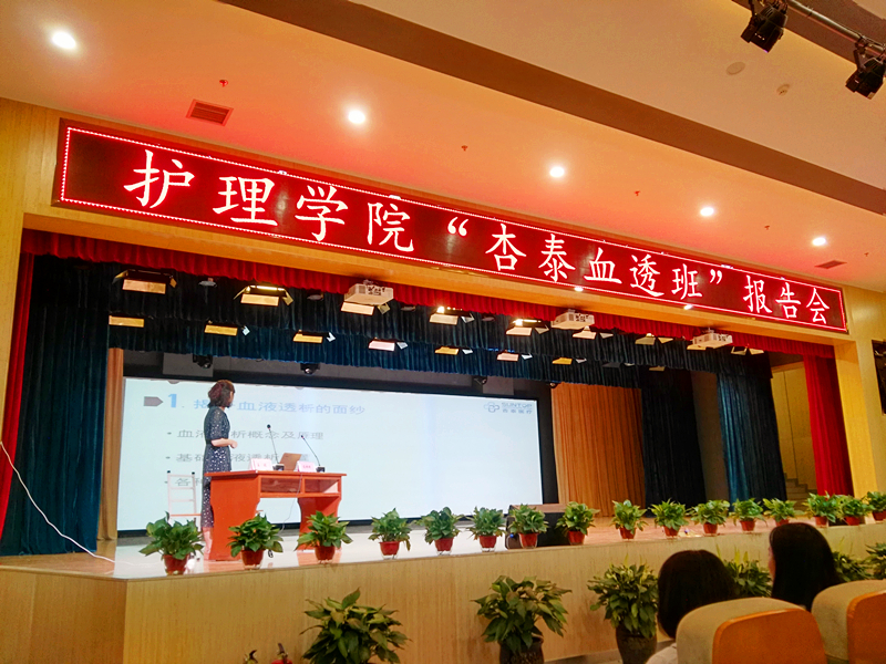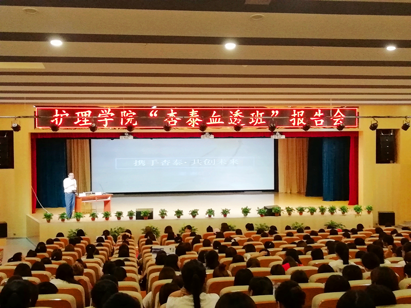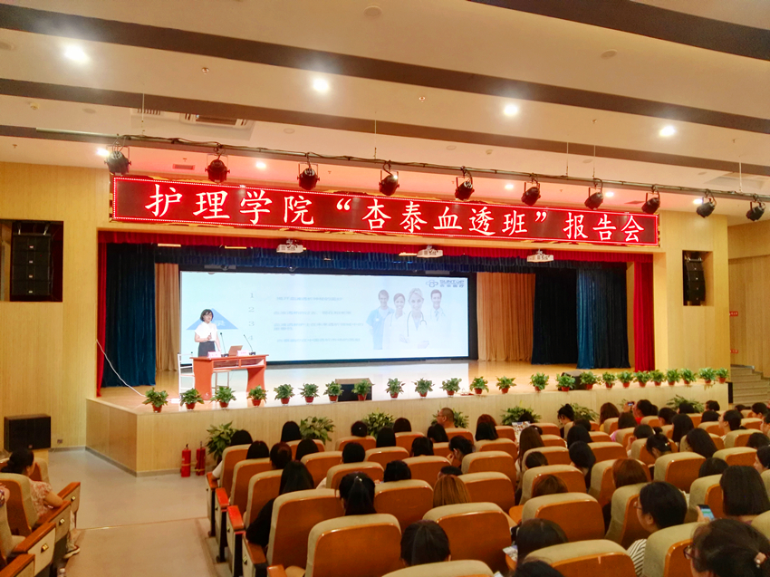 6月20日下午,世界杯官网在世界杯官网图书馆报告厅举办了“杏泰血透班”报告会。杏泰国际贸易有限公司负责人、我院院长张文信、十余名专业教师和500余名学生代表参加了会议。报告会由张文信主持。