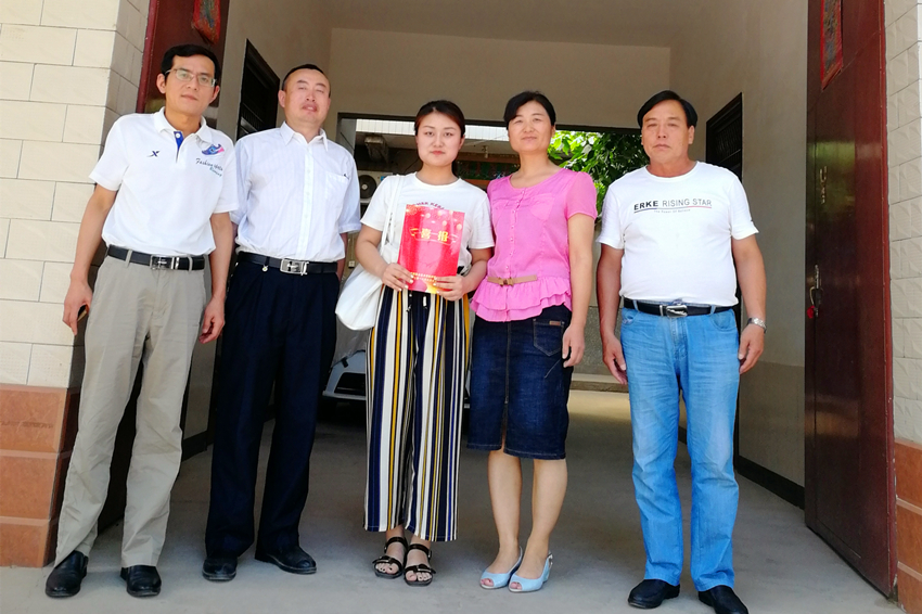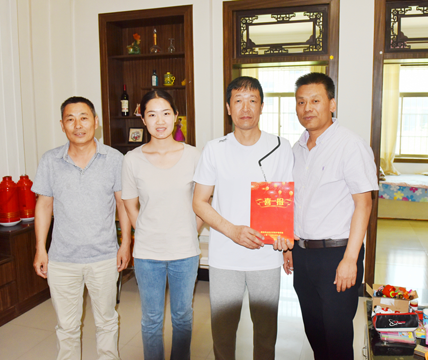 吴运胜、张春兴为杜瑶同学家长送上喜报
