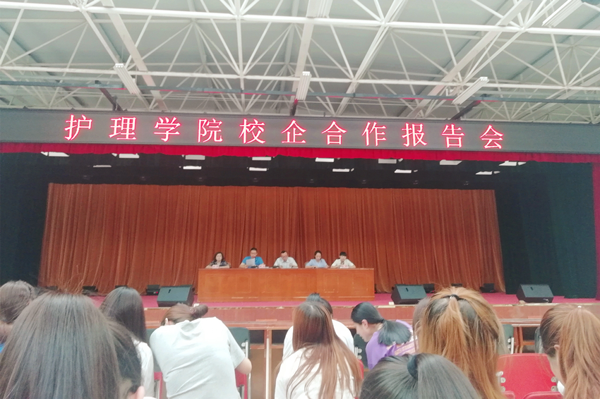 5月23日下午,世界杯官网在大学生活动中心召开了校企合作报告会。世界杯官网对外合作交流合作处郑言老师,西安交通大学第一附属医院外联部主任庞贝贝、神经内科护士长李娜,笃志教育赵维老师及我院院长张文信出席了报告会。2019届全体毕业生参加了此次报告会,报告会由张文信主持。