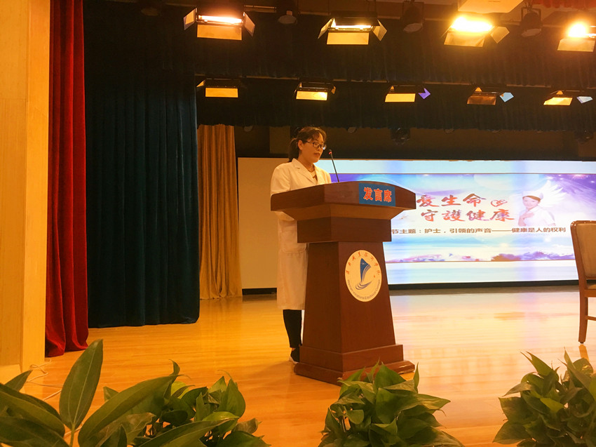 我院技能大赛优秀指导老师张敏代表我院教师作了发言。她向即将走向护理工作岗位的白衣天使们致以节日的祝贺,向同学们提出了坚定护理工作信念、不断提升自身综合实力、发扬南丁格尔精神三点希望。
