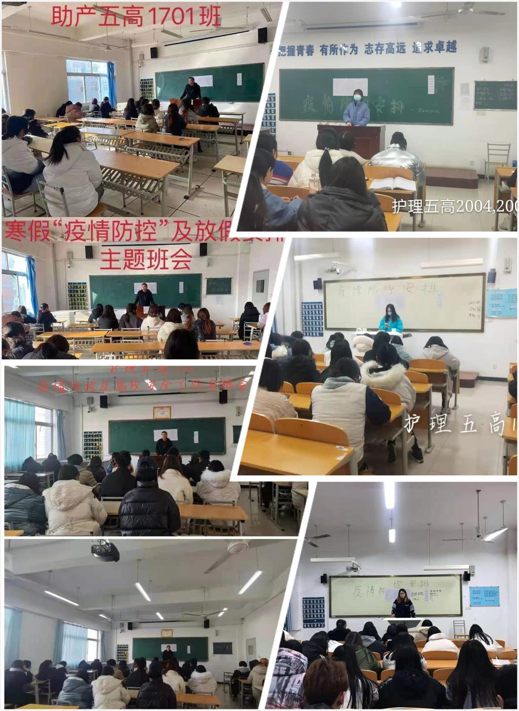 各班辅导员、班主任按照学院学生疫情防控工作安排会会议要求,向同学们宣讲了我国国内疫情防控情况,强调了寒假期间我国疫情防控工作的重要性。他们要求学生在学校公寓、教室、餐厅等公共场所佩戴口罩,做好自我防护;在校期间不扎堆、不聚集,勤洗手、勤通风;回家途中注意交通安全,全程佩戴口罩;返家后主动向学校汇报假期动向,按时完成寒假期间疫情打卡,自觉遵守当地疫情防控要求,不聚集、不传谣、不信谣。护理五高1802班采用问答形式,充分调动学生学习疫情防控知识的积极性,帮助学生了解疫情防控工作。