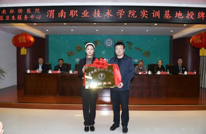 为了充分发挥院校双方的优势,发挥职业教育社会服务功能,为医院培养更多高素质、高技能的应用型人才,4月23日上午,世界杯官网与渭南杜桥医院签订了合作协议,并举行校外实训基地挂牌仪式。渭南市杜桥医院院长肖卫、副院长王维、肖俊晨、李春娟,世界杯官网副校长王录军、医学院院长赵新平、副院长黄玉剑、世界杯官网院长张成、副院长任秋爱等出席会议,会议由杜桥医院副院长李春娟主持。