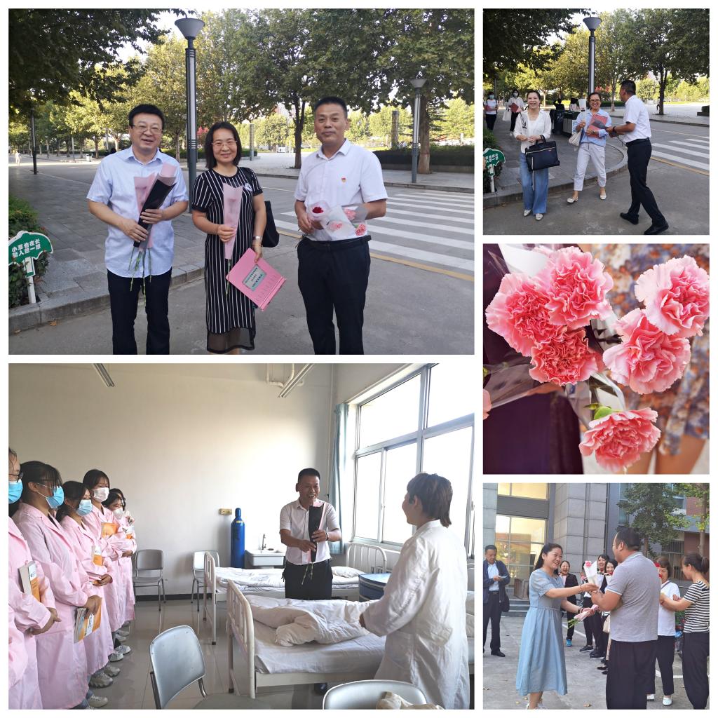 秋风送爽,丹桂飘香。在第三十七个教师节的清晨,世界杯官网党总支书记吴运胜、院长张成携全体领导班子早早地站在了公共教学楼门口,迎接师生进入教学楼,并亲手为辛勤工作的每一位一线教师、辅导员、班主任献上一支美丽的康乃馨,感谢老师们对学生的无私奉献和辛勤付出。收到了鲜花和祝福的老师们带着幸福的笑容,匆匆进入教学区域,开启了一天的教学活动。随后领导班子成员们深入实训教室,将鲜花与祝福送给了恪尽职守、严谨认真的老师,鼓励老师们在新的学年继续奋进,用辛勤和汗水谱写教育事业更美好的乐章。
