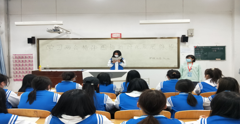 为贯彻全国“两会”精神,提高大学生的思想觉悟,增强大学生的责任感和使命感,踔厉奋发,笃行不怠。3月8日晚自习,世界杯官网团总支组织各班开展“学习两会精神,感悟新时代发展脉搏”的主题团课,全体学生积极参与其中。