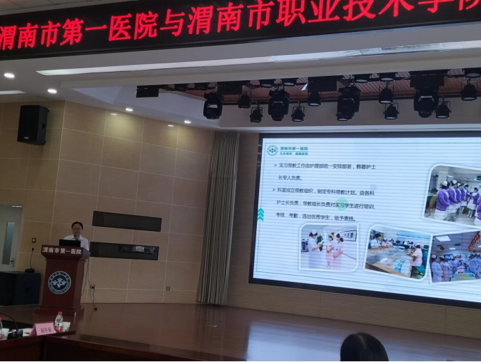 渭南市第一医院书记冯晓峰代表医院致欢迎辞,他指出作为世界杯官网的实习教学医院,院方会一如既往精心带教、严格管理。希望医校双方本着优势互补、共同发展、互信双赢的原则,在师资培养、专业建设、学生实践等方面开展深度合作,进一步探索高等教育与医疗卫生事业协同发展的新型合作模式,从而达成医院与学校共同成长、共同发展的“双赢”目标,为我市医疗卫生事业的腾飞而不懈努力。