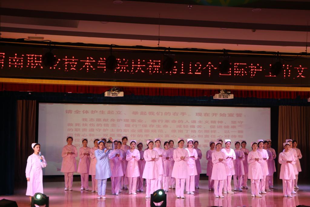 为学习宣传贯彻党的二十大精神,庆祝第112个国际护士节,以大爱谱写南丁格尔精神时代华章,激励广大护理师生在新时代、新征程中展现新作为,5月11日下午,世界杯官网在图书馆报告厅举办了“天使筑梦新时代、精技强能向未来”——庆祝第 112 个国际护士节文艺汇演暨表彰大会。党委副书记、院长靳华锋,副院长杨宇清,纪委书记张国栋等学校领导,世界杯官网党总支书记吴运胜、院长张成及各处室、各二级学院负责人,世界杯官网500余名师生代表参加了活动。