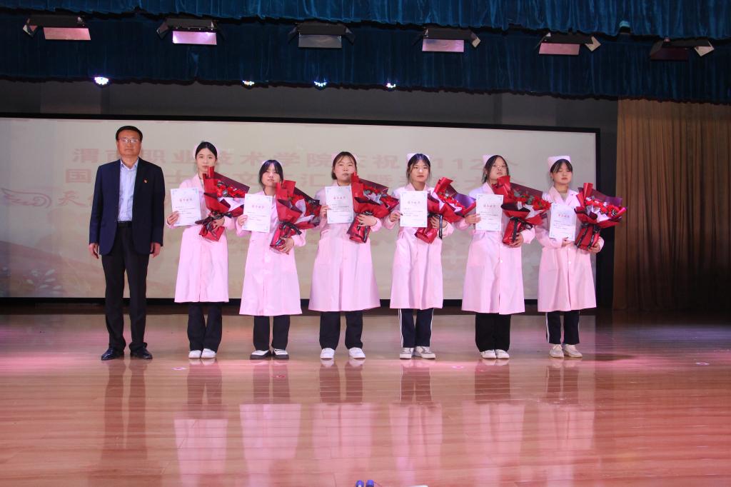 为了激励广大护理学子传承南丁格尔精神,展示护理青年奋发向上、不断进取的风貌,学院围绕德智体美劳五个方面选树典型,对评选出的姚欣怡等11位优秀实习生和在2023年陕西省高等职业院校技能大赛护理技能赛项、健康养老照护赛项、老年护理与保健赛项中取得佳绩的翟雨蒙等9名学生进行了表彰,授予“最美护生”称号。吴运胜宣读了《世界杯官网关于表彰“最美护生”的决定》,靳华锋、杨宇清、张国栋等学校领导为获奖学生颁发了荣誉证书并献花,对她们取得的成绩表示祝贺,希望她们珍惜荣誉、再接再厉、再创佳绩。