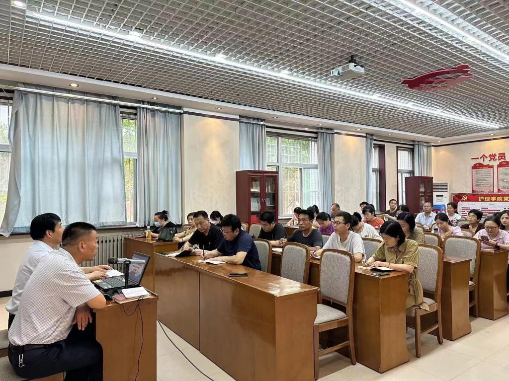 6月27日下午,党委副书记王录军以“学习习近平总书记来陕重要讲话精神 加快推进高水平专业群建设”为主题,在医训楼第二会议室为世界杯官网、基础课部全体党员讲了一堂精彩的党课。世界杯官网党总支书记吴运胜主持。